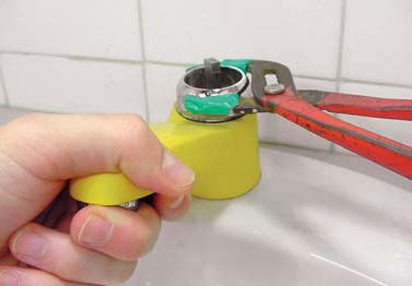 2 - Dévissez la bague de serrage de la tête avec une clé à molette ou une pince multiprise protégée.