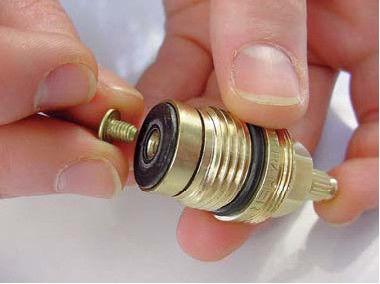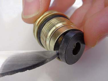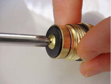 1 - Dans un mélangeur, les têtes sont cachées par les croisillons. Ôtez les pastilles de couleur avec la pointe d’un couteau, puis retirez la vis de fixation du croisillon.
